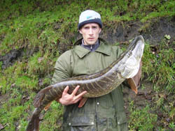 Jan Tinnemas (left) with son Nick and a friend, and his specimen trout
