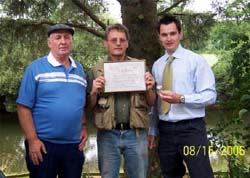 Jan Tinnemas (left) with son Nick and a friend, and his specimen trout