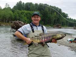 Jan Tinnemas (left) with son Nick and a friend, and his specimen trout