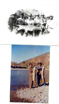 Jan Tinnemas (left) with son Nick and a friend, and his specimen trout