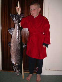 Seven year old Jamie Sullivan with his Salmon