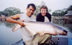 Jan Tinnemas (left) with son Nick and a friend, and his specimen trout