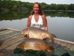 Julia Vickers with a 42lband 38.5lb Carp fromLake Meillant