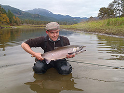Dan Nicholson with a big fly caught COHO