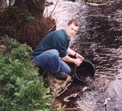 Jan Tinnemas (left) with son Nick and a friend, and his specimen trout