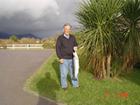 Jan Tinnemas (left) with son Nick and a friend, and his specimen trout