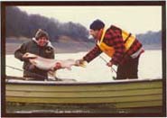 Jan Tinnemas (left) with son Nick and a friend, and his specimen trout