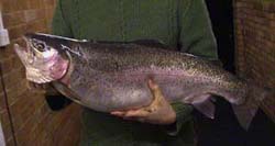 Jan Tinnemas (left) with son Nick and a friend, and his specimen trout