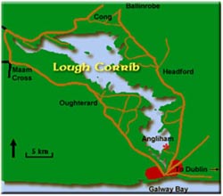 The village of Clonbur is snugly situated between Loch Corrib and Loch Mask. One mile to the west rises the majestic and storied Mount Gable where, according to legend, the hordes of Firbolg assembled on the summit before their confrontation with the Tuatha De Dannann at the Battle of Moytura.
